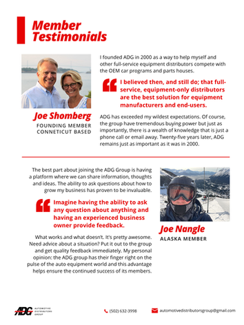 The Automotive Distributors Group (ADG) is a national buying group, focused on enhancing their business' through collaborative effort. For ADG, I have created marketing materials, re-designed their website, planned events for their growing membership, and other general administrative tasks.